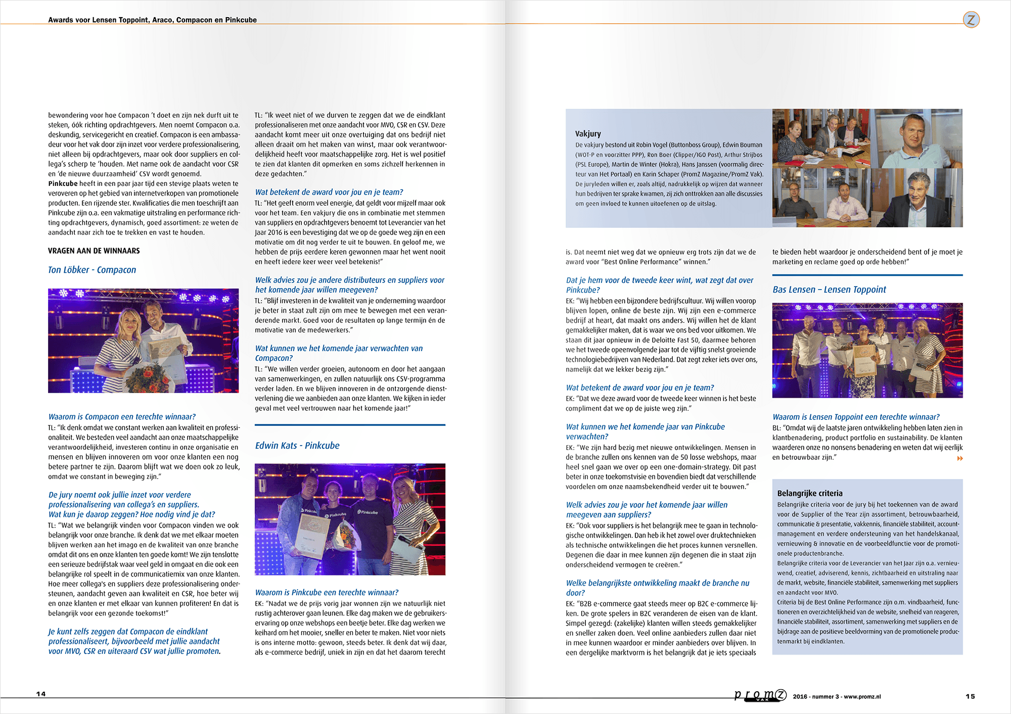 Interview met Edwin in PromZ Vak magazine (oktober 2016 – nummer 3) naar aanleiding van het winnen van de Best Online Performance award.