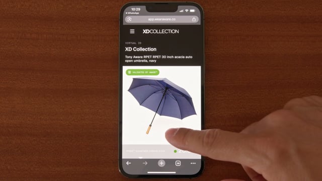 De Tony 30" gerecyclede stormparaplu met luxe handvat van acaciahout is duurzaam en betrouwbaar, gemaakt met een metalen schacht en fiberglas ribben. Met stormbestendige functie. Automatisch openen en handmatig sluiten. Daarnaast is de paraplu voorzien van een AWARE™-tracer die het gebruik van gerecyclede materialen bevestigt, waardoor het een betere keuze is. Bovendien wordt 2% van de opbrengst van elk verkocht Aware™-product gedoneerd aan Water.org.