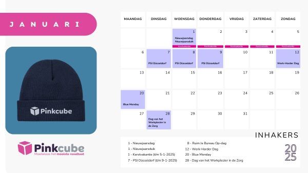 Wil je ook alle Nederlandse inhaakmomenten in je agenda markeren? Got it! Download dan ook de Pinkcube inhaakkalender 2025 van Nederland.