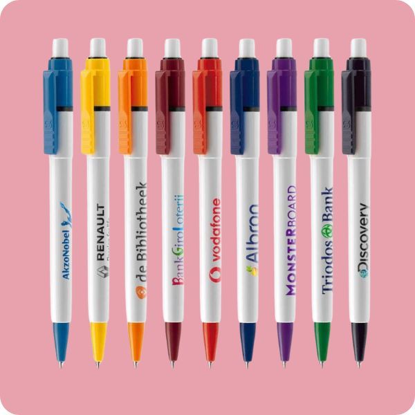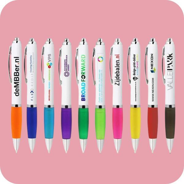 - Promotionele producten: denk aan bedrukte pennen , notitieblokken met logo , bedrukte sleutelhangers en andere producten waarop je je logo laat bedrukken.