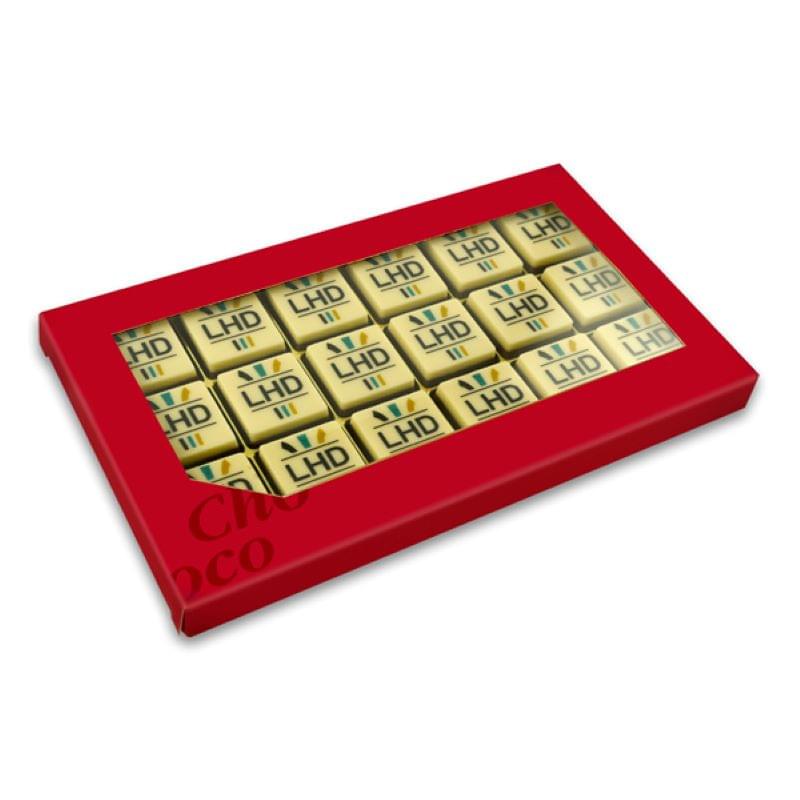 Al onze bonbons met logo zijn gemaakt van 100% UTZ Certified chocolade van Barry Callebaut. Dat betekent: duurzaam geproduceerd, eerlijk verhandeld en verrukkelijk van smaak. De logochocolaatjes worden standaard geleverd in een gouden tray of stijlvolle verpakking. Je kiest dus altijd voor een bonbon met logo die zowel opvalt als verantwoord is. En werk je liever met meerdere ontwerpen in één verpakking? Ook dat kan gewoon.