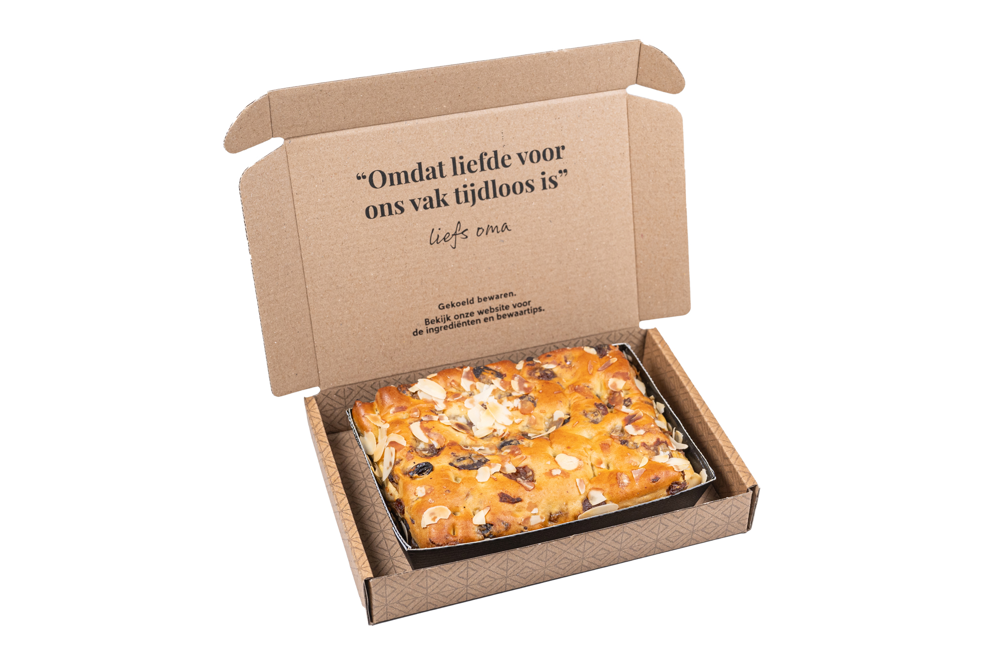 Klein van formaat, groots van smaak: de halve brievenbus stol van Oma’s Brievenbustaart is een compacte verwennerij met dezelfde rijke kwaliteit. Zacht brooddeeg, royaal gevuld met rozijnen en romig amandelspijs zorgen voor een volle, authentieke smaakbeleving.